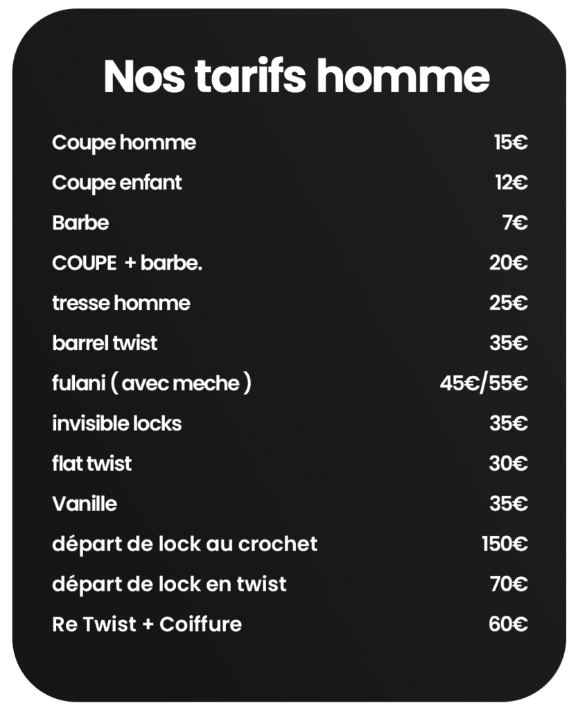 Oui, notre salon est mixte. Nous proposons des prestations adaptées aux hommes, aux femmes et aux enfants : coiffure, soins capillaires, barbier, etc.